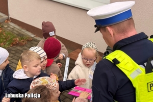 Oprócz tego dzieci dowiedziały się także jak prawidłowo przechodzić przez jezdnię, dlaczego w samochodzie należy zapinać pasy. Mundurowi przypomnieli, jak ważne są elementy odblaskowe, szczególnie w okresie jesiennym, gdy dni stają się coraz krótsze. Najważniejszym punktem spotkania były jednak prezenty, policjanci przygotowali dla dzieci mnóstwo kolorowych odblasków, a dzieci obdarowały funkcjonariuszy niezliczoną ilością rysunków i uścisków.