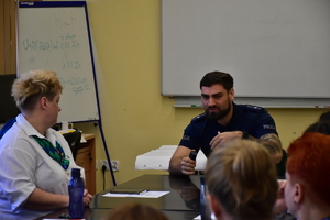 Podczas szkolenia poruszono również temat obsługi osób z zaburzeniami psychicznymi oraz emocjonalnymi. Zajęcia miały charakter praktyczny, pracownicy mieli okazję opowiedzieć sytuacje, które spotkały ich w życiu zawodowym i prywatnym, a następnie wspólnie omówić prawidłowy sposób reakcji na spotykane trudności. Funkcjonariusze przypomnieli również, jak dużą rolę w prawidłowych relacjach międzyludzkich jest zachowanie dobrostanu psychicznego i balansu pomiędzy obowiązkami zawodowymi a życiem prywatnym. Przekazali również praktyczne wskazówki na pozbycie się napięcia emocjonalnego związanego z trudnymi sytuacjami w miejscu pracy. Takie inicjatywy pokazują, jak ważna jest współpraca służb i instytucji publicznych na rzecz poprawy bezpieczeństw obywateli.