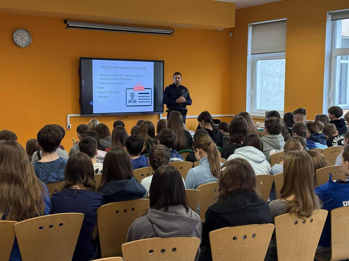 Uczniowie dowiedzieli się także, jak reagować na hejt, cyberprzemoc oraz próby wyłudzenia informacji. Policjant przypomniał także, że w sytuacjach budzących niepokój zawsze warto zwrócić się o pomoc do rodziców, nauczycieli lub zgłosić sprawę odpowiednim służbom.
